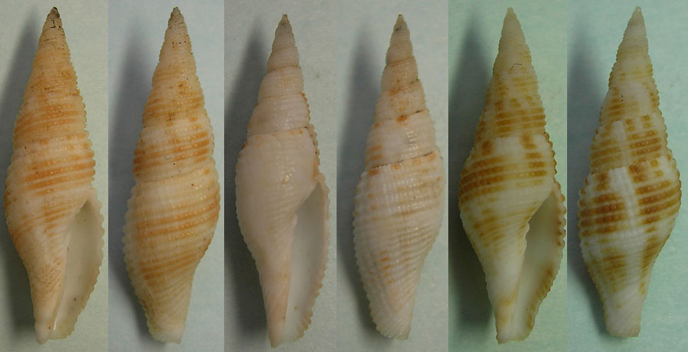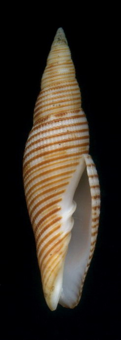 郭大哥有兩隻,17-18mm,您可以按連結看Hardy網站上方第三隻殼,東中國海撈的幾乎都是這一型.筆螺專書C-11,那隻殼,長的特別奇怪.這是台灣貝類資料庫未紀錄種. |