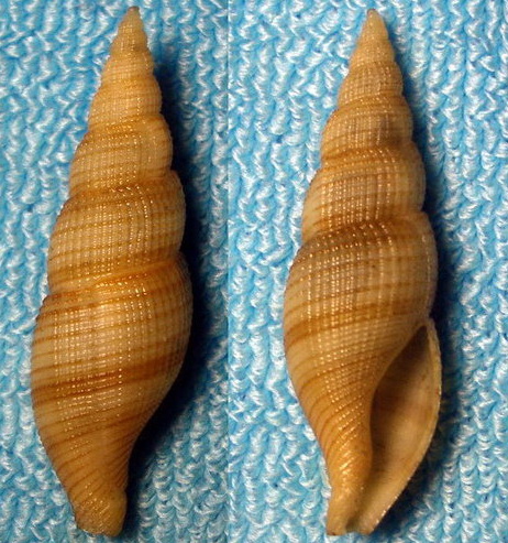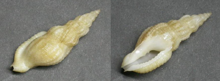 看仔細一點,有兩顆軸齒,不是布紋螺,而是細長型的核螺.查了一下,是(暫譯)萬歲核螺Turehua (Pisanella) viva, (Habe, T. & T.A. Okutani, 1981).這也是台灣新紀錄種.