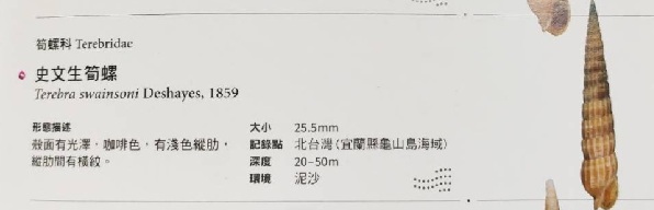 ¡m¨©¤§¹D¡n¦³¬ö¿ý¤@ºØ¥v¤å¥Íµ«Á³Punctoterebra swainsoni (Deshayes,1859)¡A¯S¼x»PNo.38«D±`¬Û¦ü¡A´£¨Ñ¯¸ªø°Ñ¦Ò¡C