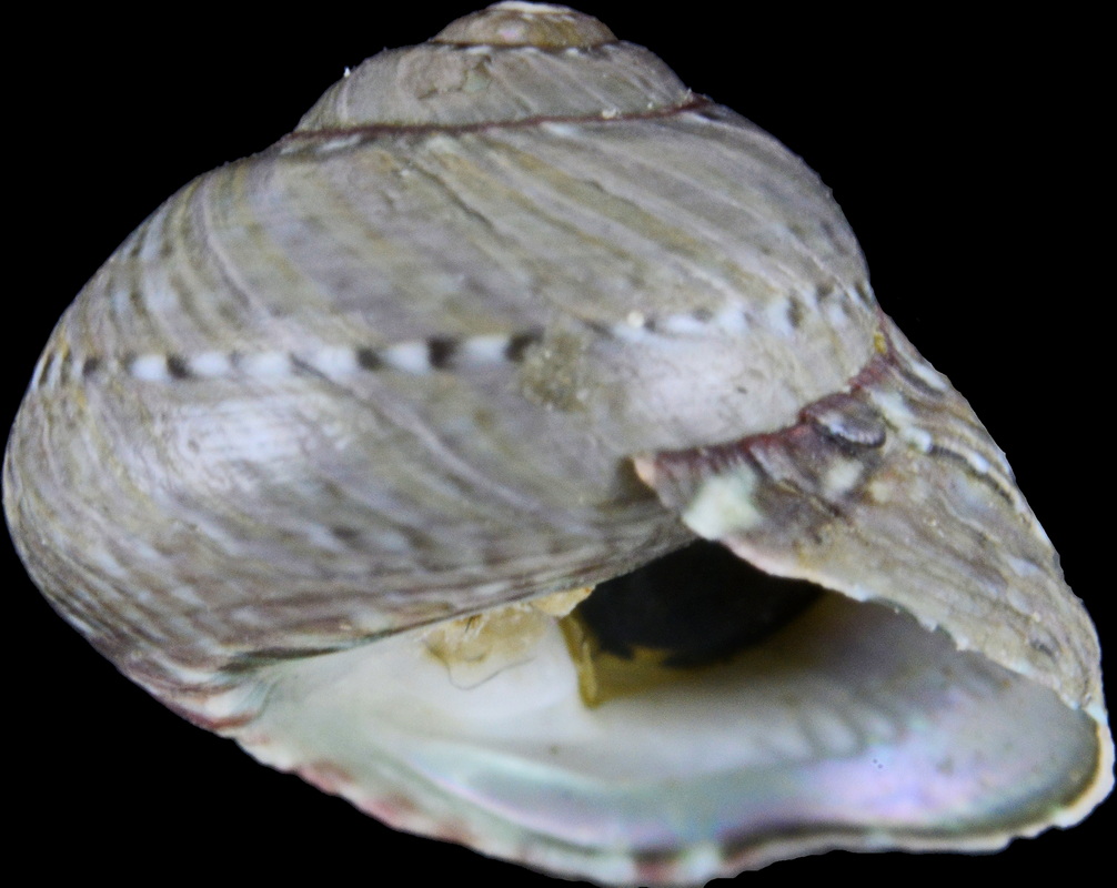它就是一隻縱肋極強的殼(才會有殼底的放射花色),主色帶極寬,跟秀如鐘螺與鹽寮鐘螺這些窄的主色帶,不相同.