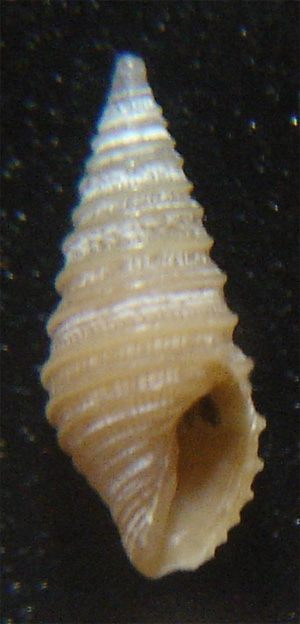 04.11.27.於高雄蚵仔寮撿到.長約4mm,目前找不到名字.初步判定是Turris屬的捲管螺.