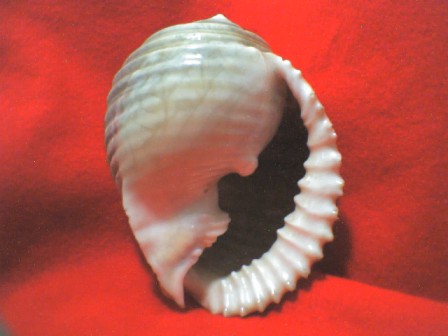 今天早上到里長家.看到花盆上有一顆狗牙鶉螺在做日光浴.幸好殼口向下.沒有曝曬到.跟里長要了回來.洗淨後還蠻漂亮的.(裡面還有肉塊).14.2cm
