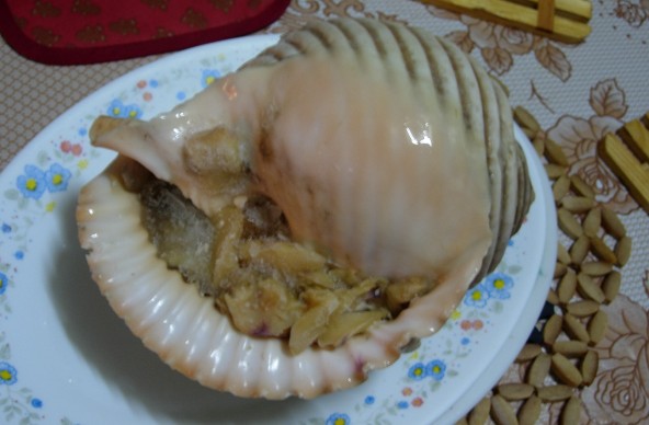 conus兄.問了一下真的會捶心肝.居然是外燴的佳餚.一桌一顆連肉帶殼.還遇過兩次.我居然沒遇到過.唉呀!我只遇過皮革斧蛤.大刀蟶.海扇.大千手螺.西非骨螺等等.