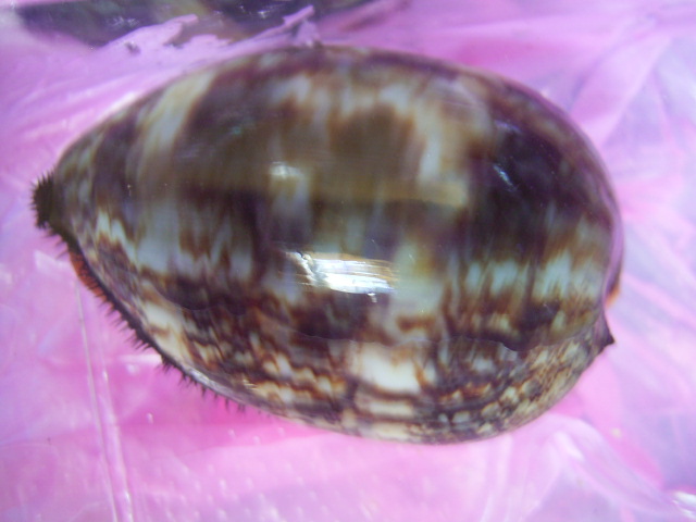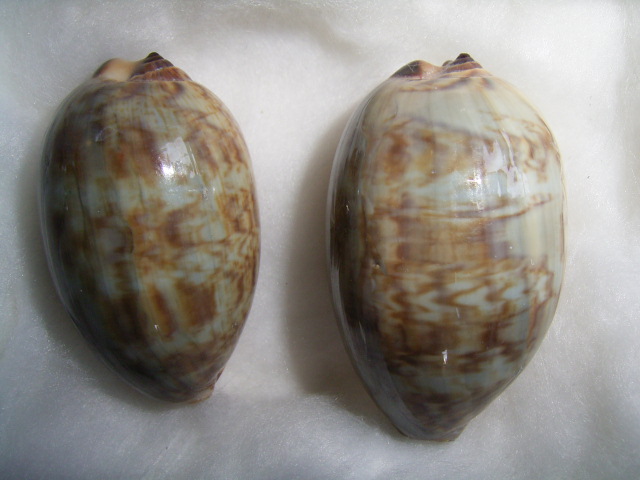 敝人為初學者,個人淺見是,阿拉伯寶螺的幼貝殼面花紋成藍褐色之美麗雲班,且覆面至近殼唇附近,故殼腹與齒列的素面面積較少,再來是阿拉伯寶螺在出水口上方常有形成一似小螺塔的東東,可為辨識的特徵.
