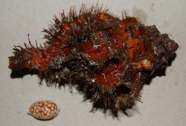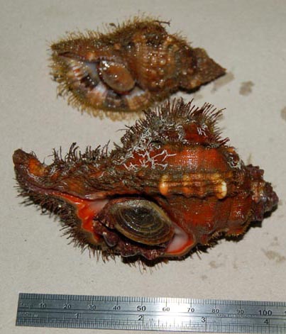 大象法螺與矮毛法螺,一個螺塔完整,一個尺寸大,兩者都很不錯.