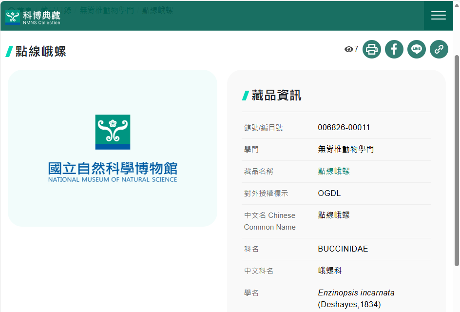 把Enzinopsis incarnata誤稱為點線峨螺,似乎只有國立自然科學博物館