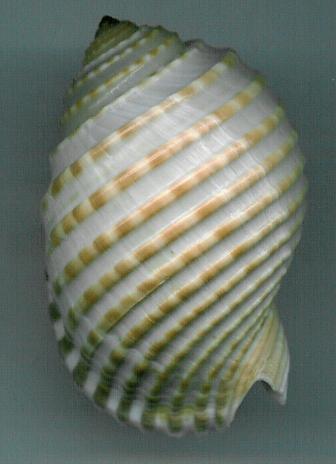 南方花點鶉螺---螺肋較疏.各肋粗細相間兩粗肋之間有細肋.肋上斑點稀疏(這個種最有問題)