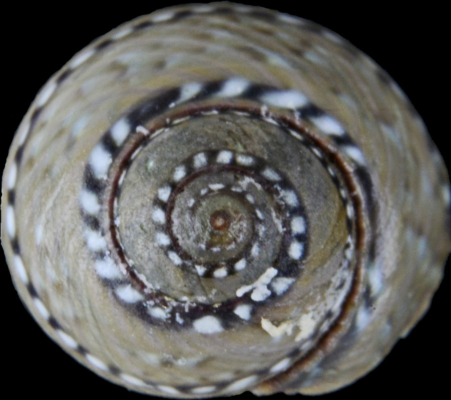 縫合下黑色帶的發生與寬度: 縫合下黑色極窄,淺色帶極窄,主色帶寬於壽司鐘螺窄於聰明鐘螺,持續到體殼層.
