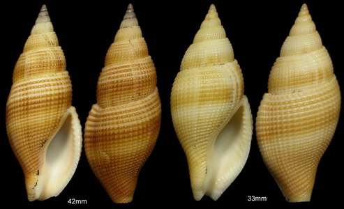 2. 我問為什麼有人(就是Poppe)將峨螺中的Fusus 或 Cumia兩屬放進布紋螺科?(如下圖Cumia simonies Bozzetti, L., 2004),David回答他正在研究這個問題,希望很快能擺平.