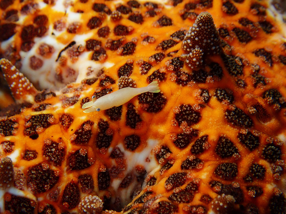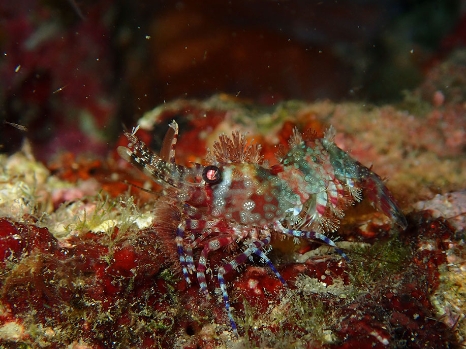 這隻乍看像油彩蠟膜蝦,其實是白斑拖蝦,又稱為安波托蝦 Thor amboinensis (de Man, 1888)