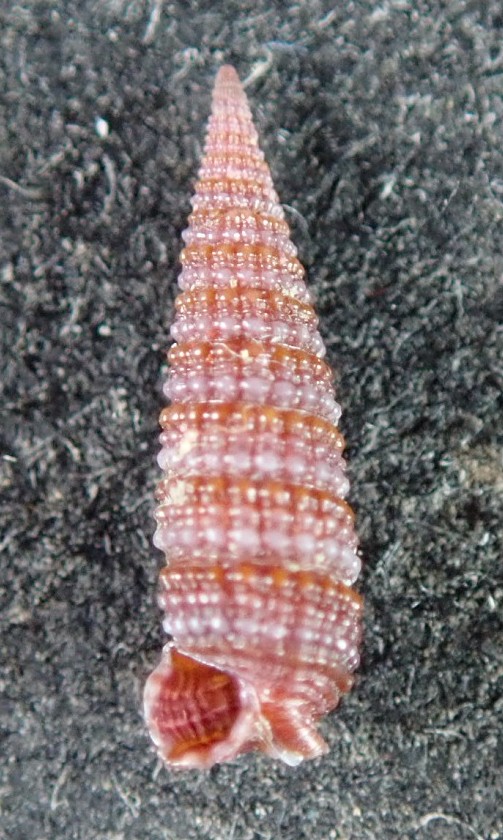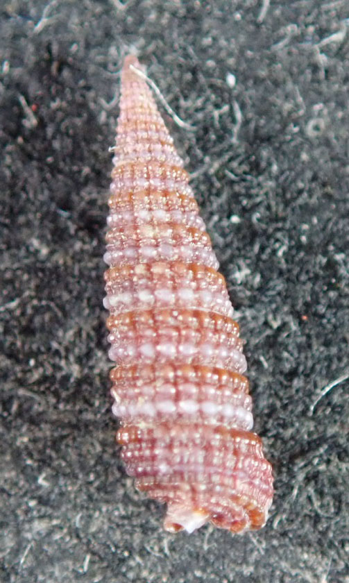 哈維左錐螺 Monophorus hervieri (Kosuge,1962),本種具有豔麗的外表,非常吸睛,容易讓人誤以為是少見的種類。事實上本種是常見的種類,尤其北台灣的數量又比南台灣多。 |