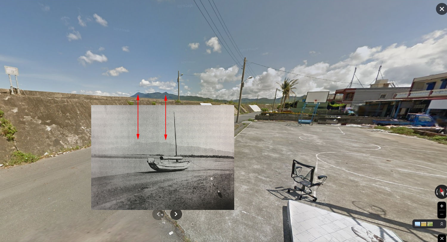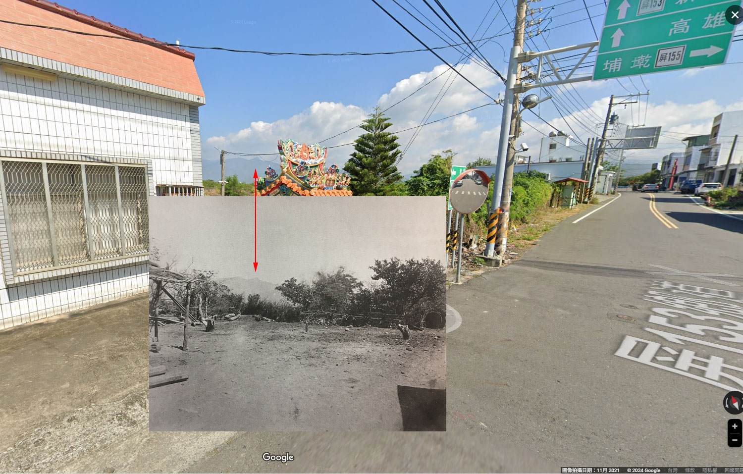 邊走邊比對照片,來到與照片中呈現差不多的位置,大約如下圖的地方。