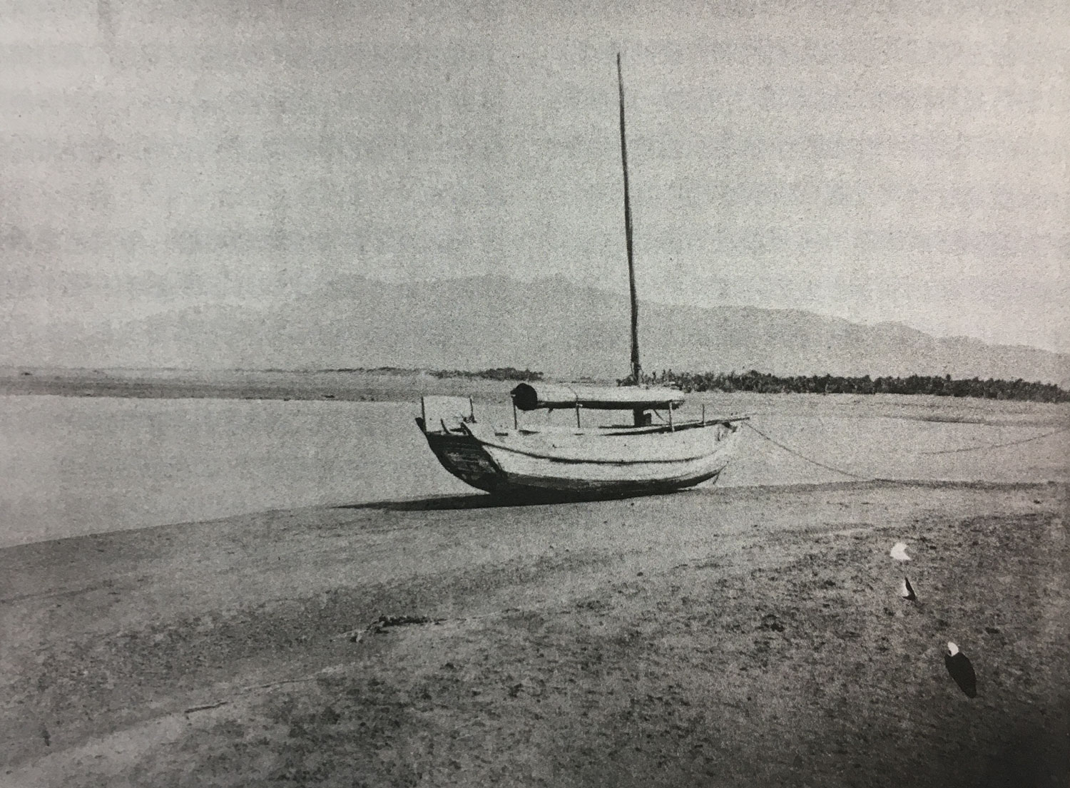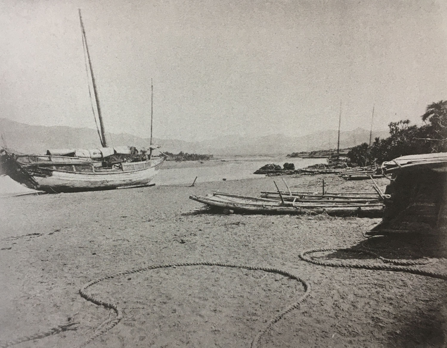 李仙得也在保力溪岸邊拍了2張以船為主體的照片,此時剛好退潮,船擱淺在沙灘上,