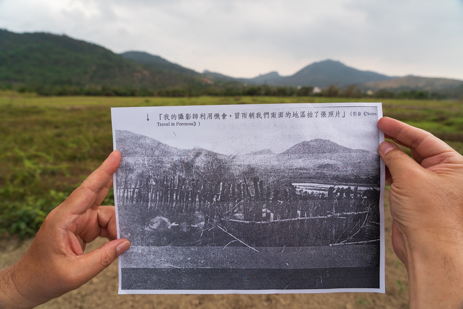 接下來要去看一張也是在射麻里拍的照片,李仙得要求攝影師(李康洂)往南走,到田埂旁的一個牛欄,