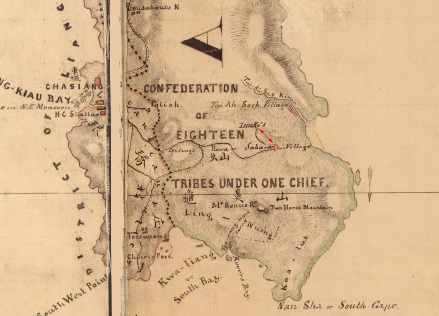首先,我們先參考一下李仙得的地圖,看伊沙(ISA)住那裡?李仙得的地圖是在1870年所繪,上面記載的是Isuck,