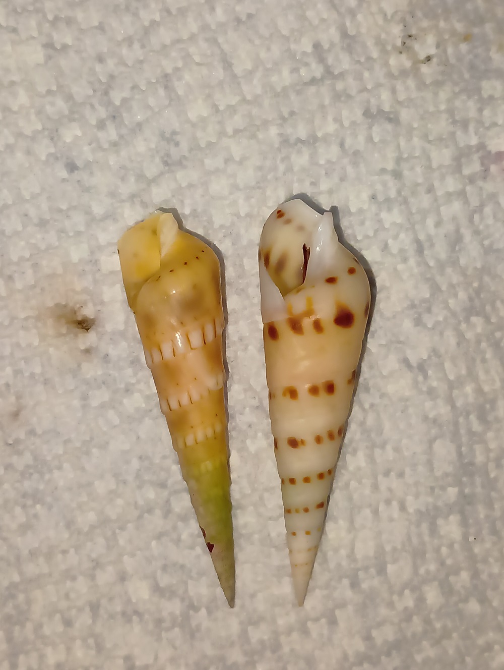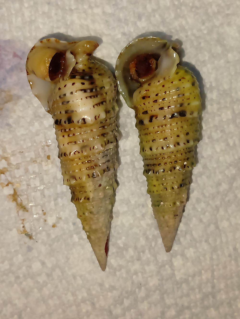 左: 花牙筍螺 Oxymeris crenulata (Linnaeus, 1758)