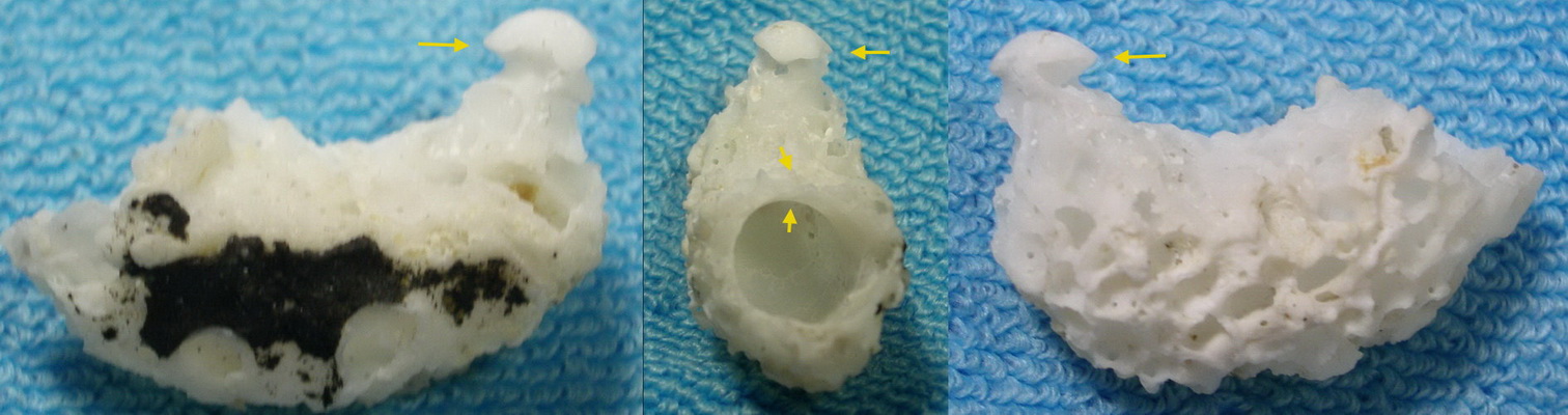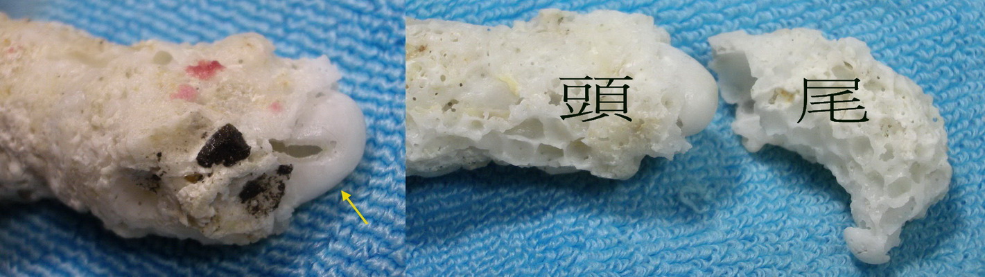 二是遠離殼口的斷端,殼薄而脆,只有最內層較硬實,這就是殼胚,殼胚的頂端,還具有像香菇狀的增厚突起,真是有夠可愛.