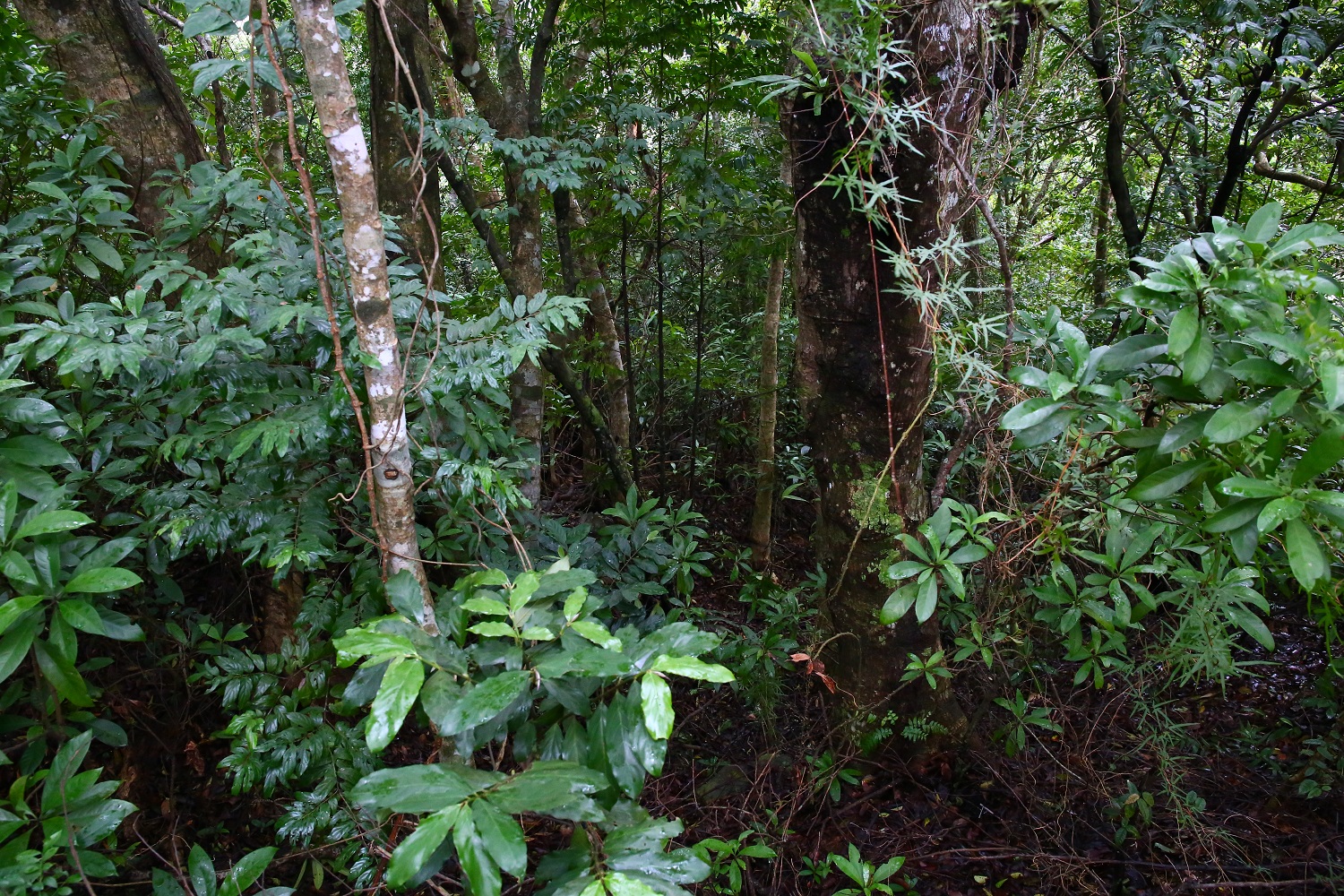 步道旁邊有另一個平坦的窪地, 但已長滿樹木, 無法探勘是否有建築物的地基