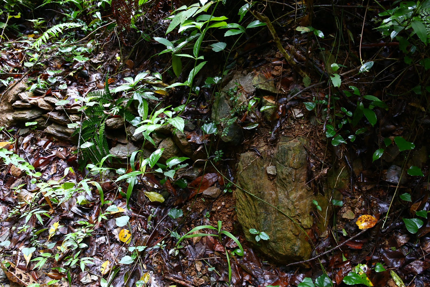 再往前走, 看到一條用當地片麻岩築成的人造牆基結構及一些駁坎, 不過很難斷定是何時何人所堆砌。