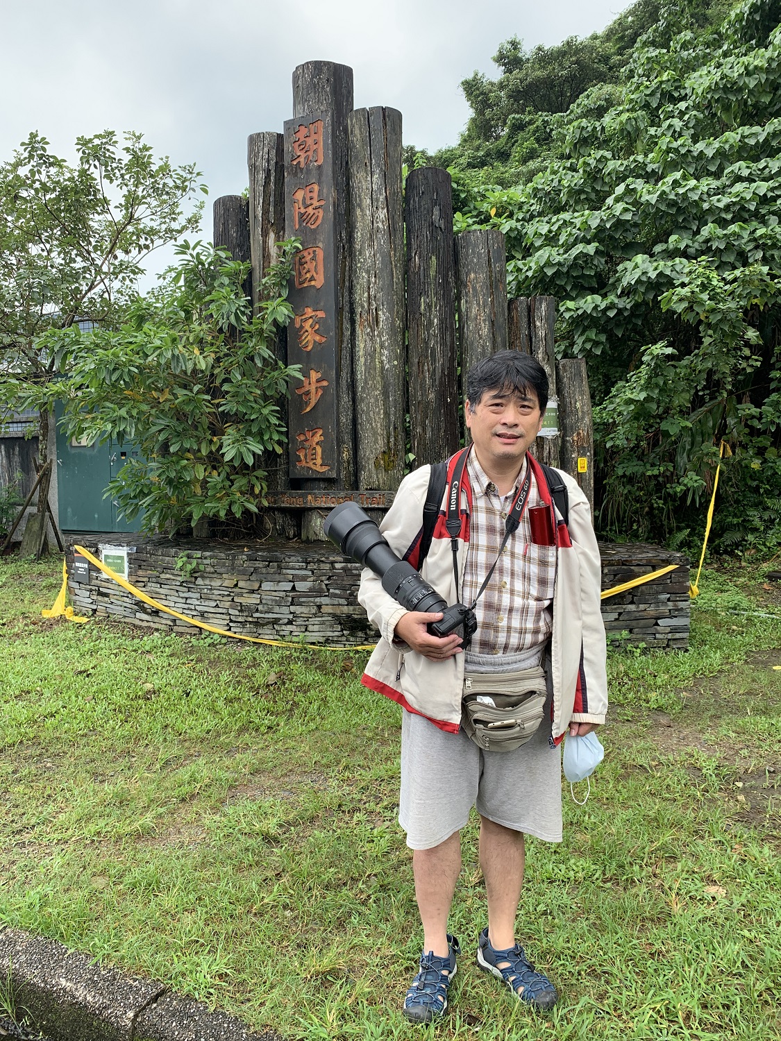 當天我選擇從漁港旁的入口開始登山, 入口處的木製入口意象裝置(朝陽國家步道)已腐朽傾斜, 被圍起禁止靠近的黃色警示線。
