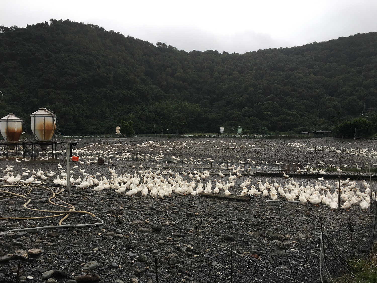 現在這個谷地是一家養鴨場, 建了很多飼料塔。