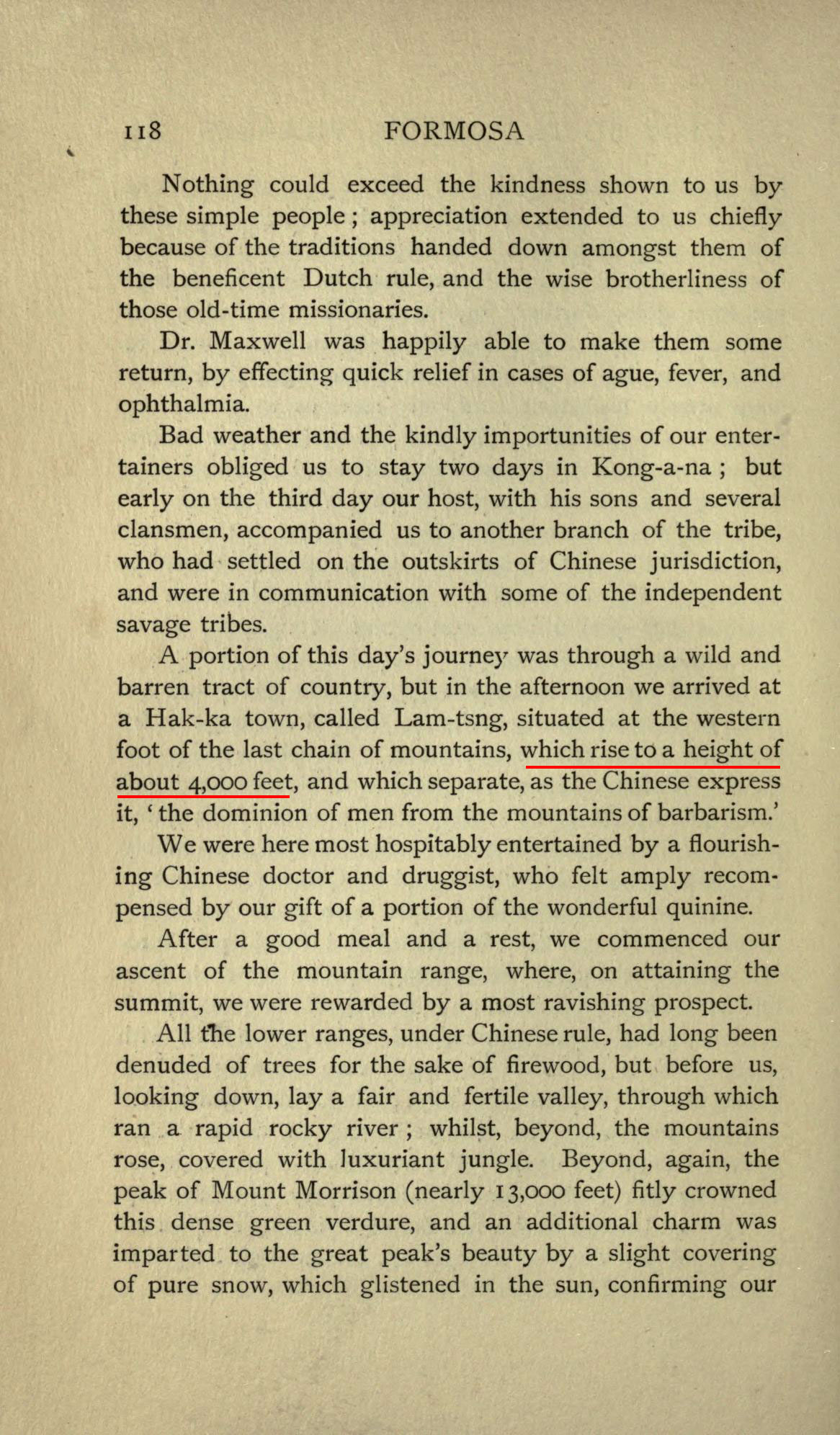 另外, 必麒麟在其回憶錄118頁還提到這條稜線最高接近4,000英尺。
