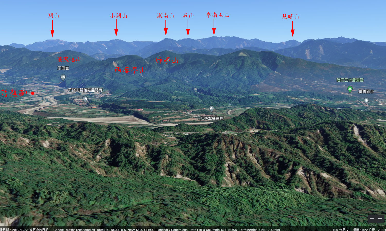 雖然當天天氣條件略差, 無法看清山稜全貌, 所幸先前已使用Google earth作足了功課, 模擬3D地形全景