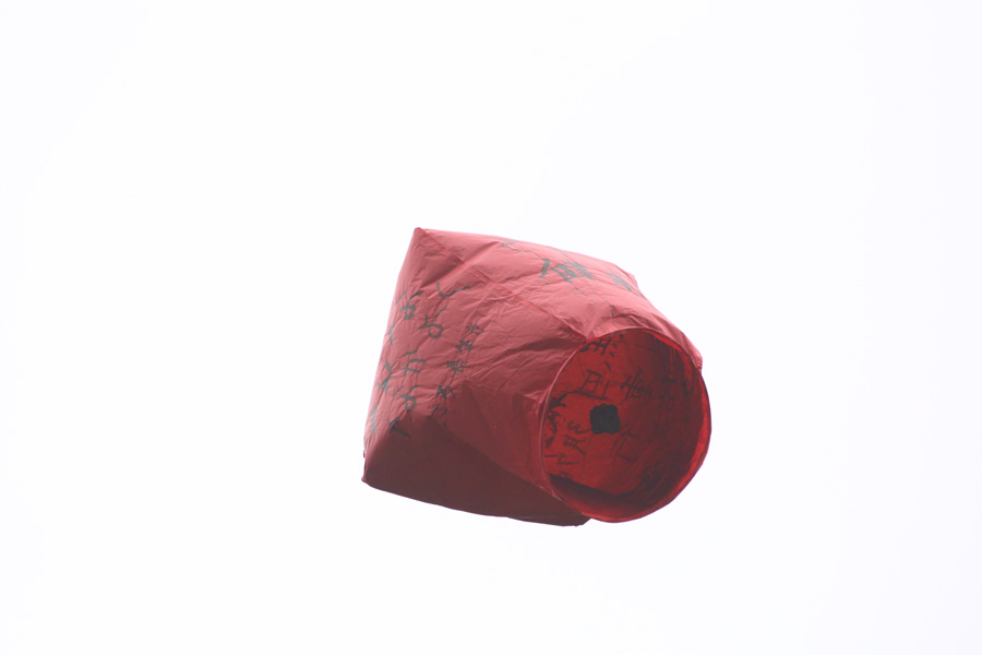 4.從十分車站點燃上升的天燈, 通常會在望古車站附近下墜, 一連下來兩個天燈, 剛好都是日本遊客點的天燈, 落下的一剎那, 馬上起火燃燒, 還好最近幾天有下雨, 水氣很重, 否則要引起火災是很容易的事