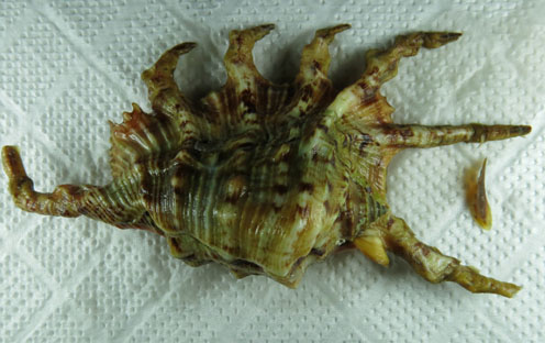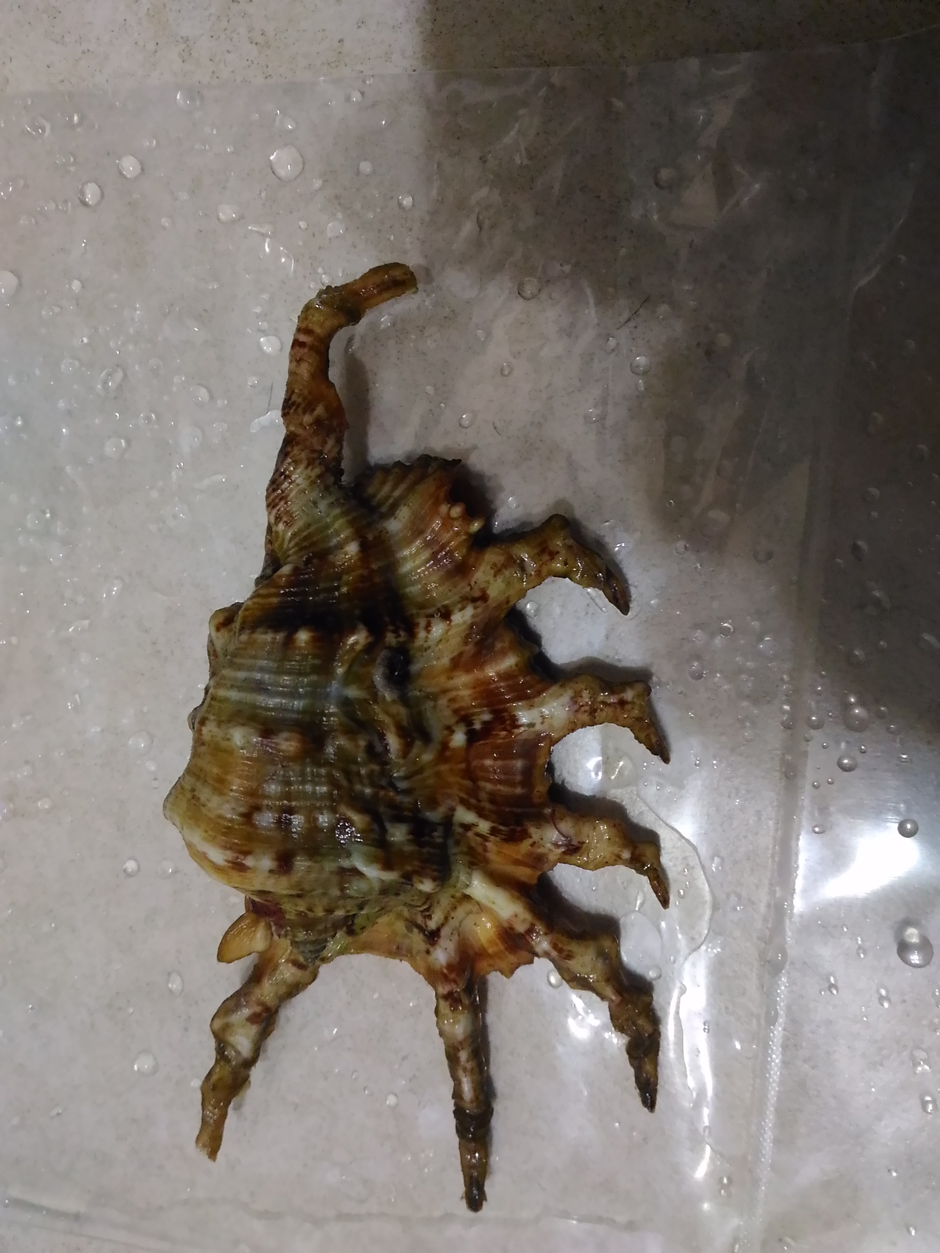 要離開時巧遇賴先生 遠遠的揮手打個招呼就要離開 忽然見賴先生對著我猛招手 本來都騎上去了 在折回 然後就收到這美麗的蠍螺 還用袋子封裝好放冷凍 整個食品級的概念