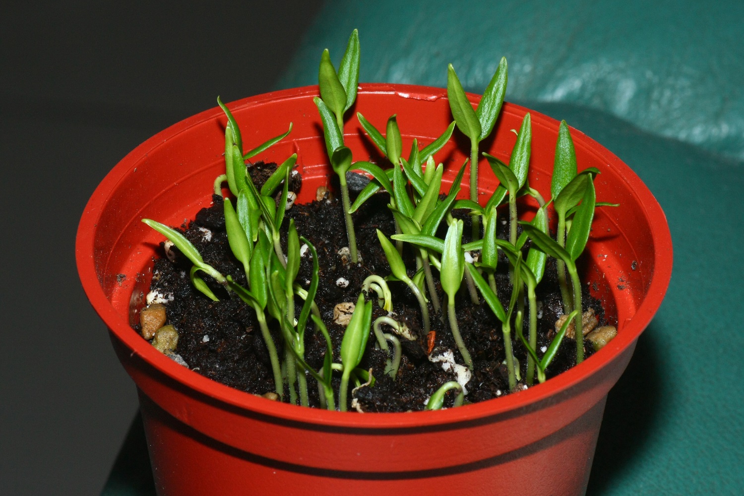 買來的甜椒, 切開後有很多種子, 收集起來晾乾, 種在培養土中, 澆水3天就能發芽, 發芽率超級高, 5天就能冒出頭。
