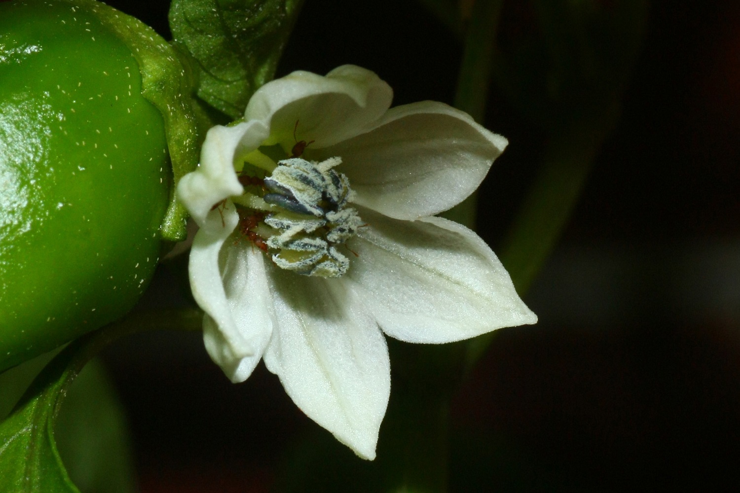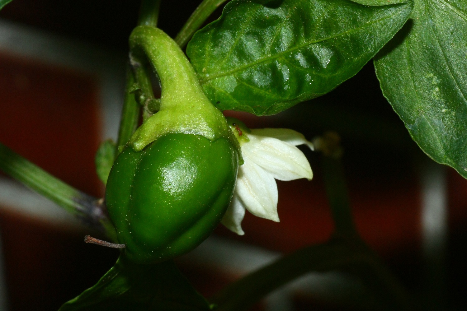 種了這麼久的甜椒, 很少看到它開花, 偶而有開, 也不會結果, 花不大, 不到一公分, 不知是不是要人工授粉才會結果?