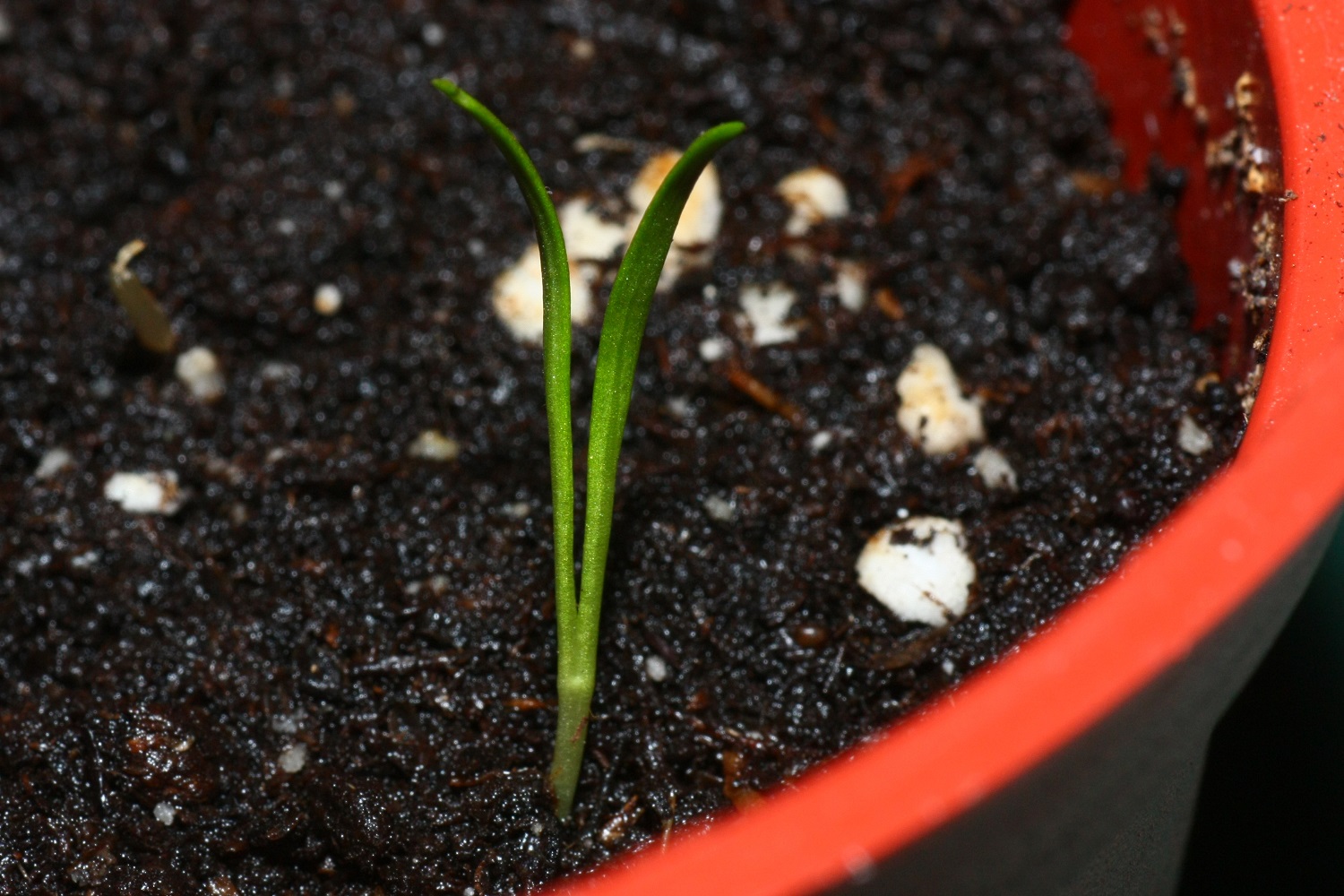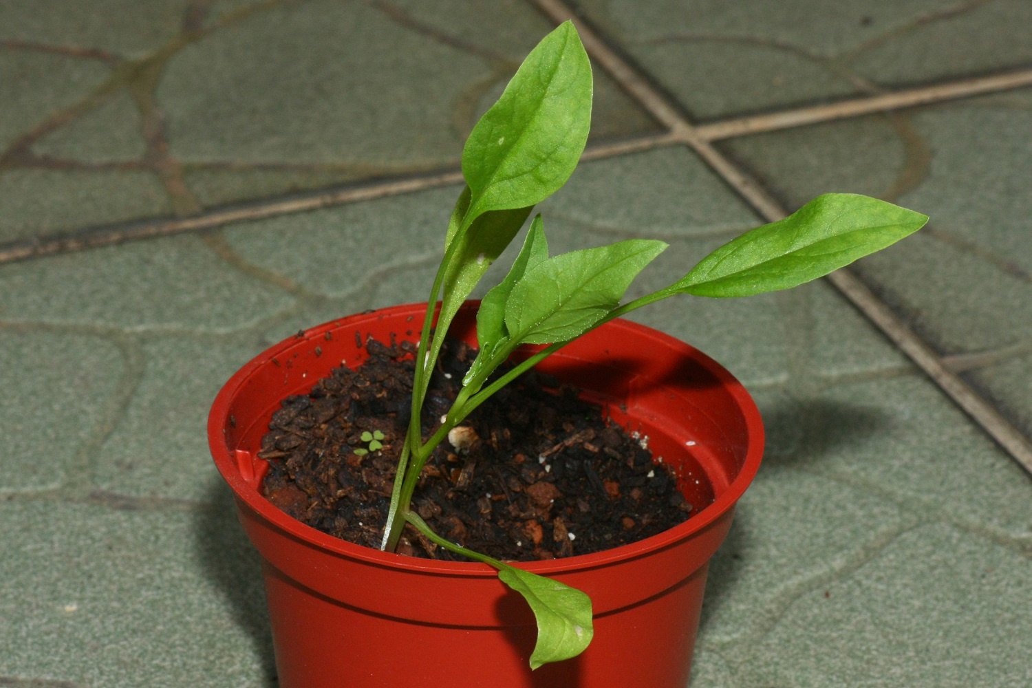 一年前買來的西螺菠菜(一種品種),忘了栽種,這幾天才放在培養土中,幾百顆種子才冒出一顆幼苗,還不見能長大呢。