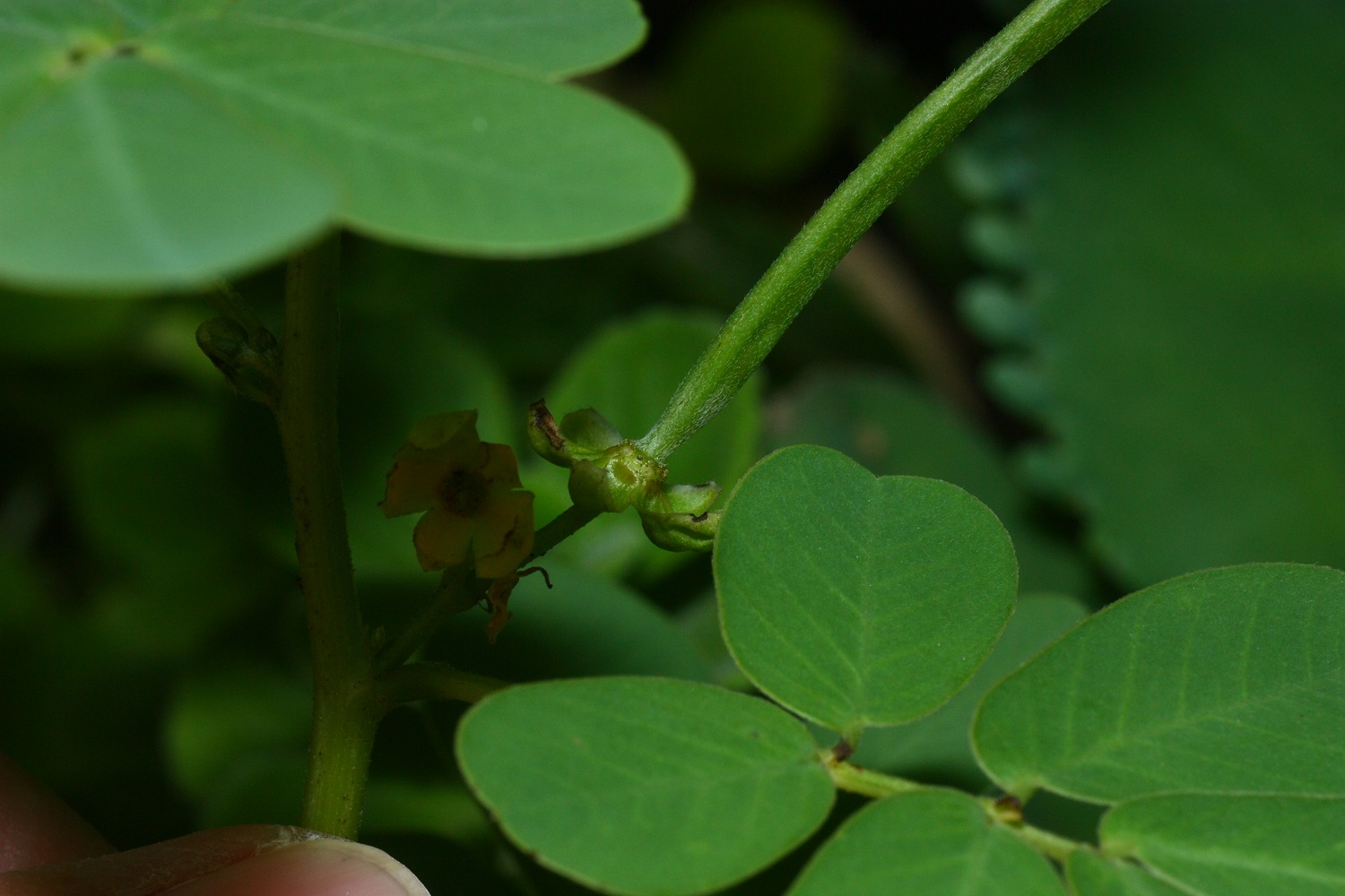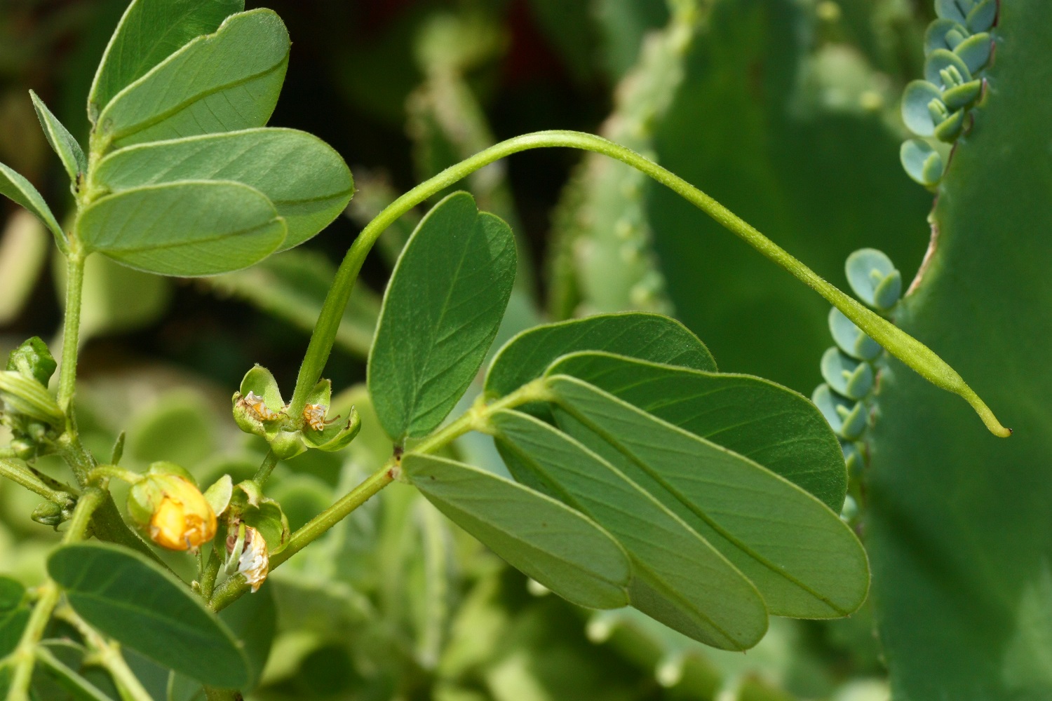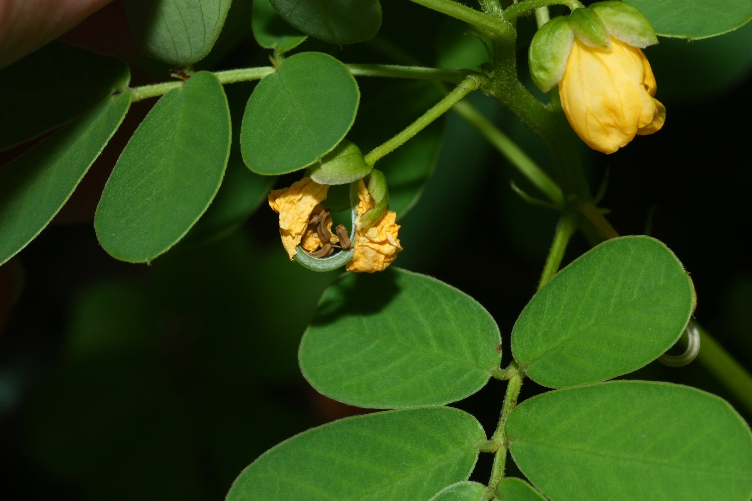 決明, 豆科(Leguminosae), 決明屬(Senna), 又稱為:決明子、草決明、假綠豆、馬蹄決明、大號山土豆、小決明, 學名:Senna tora (Linn.) Roxb., 英文名稱:Sickle Senna, 原產地是北美洲。