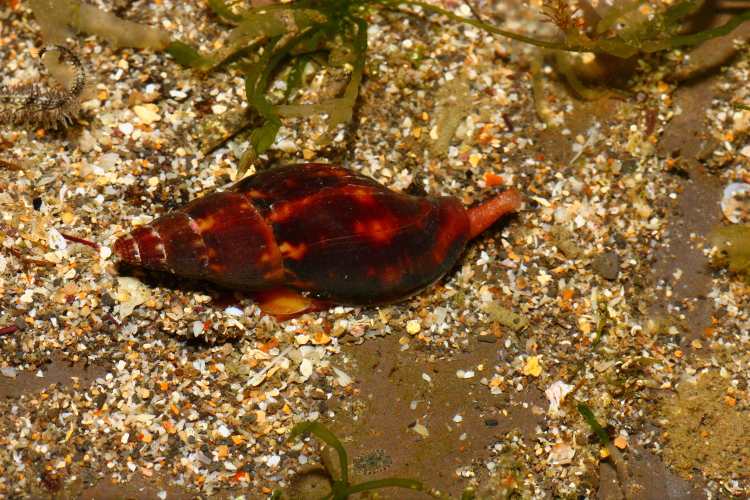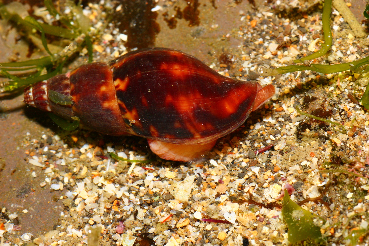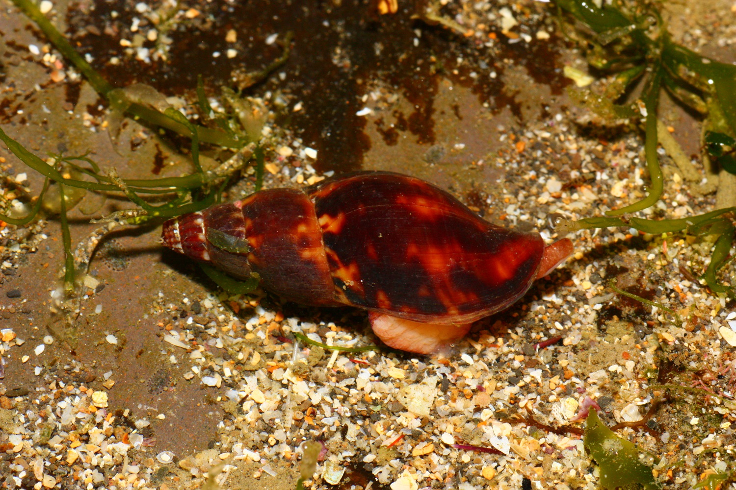 火焰峨螺在東北角的潮間帶頗為常見, 九孔池數量也很多