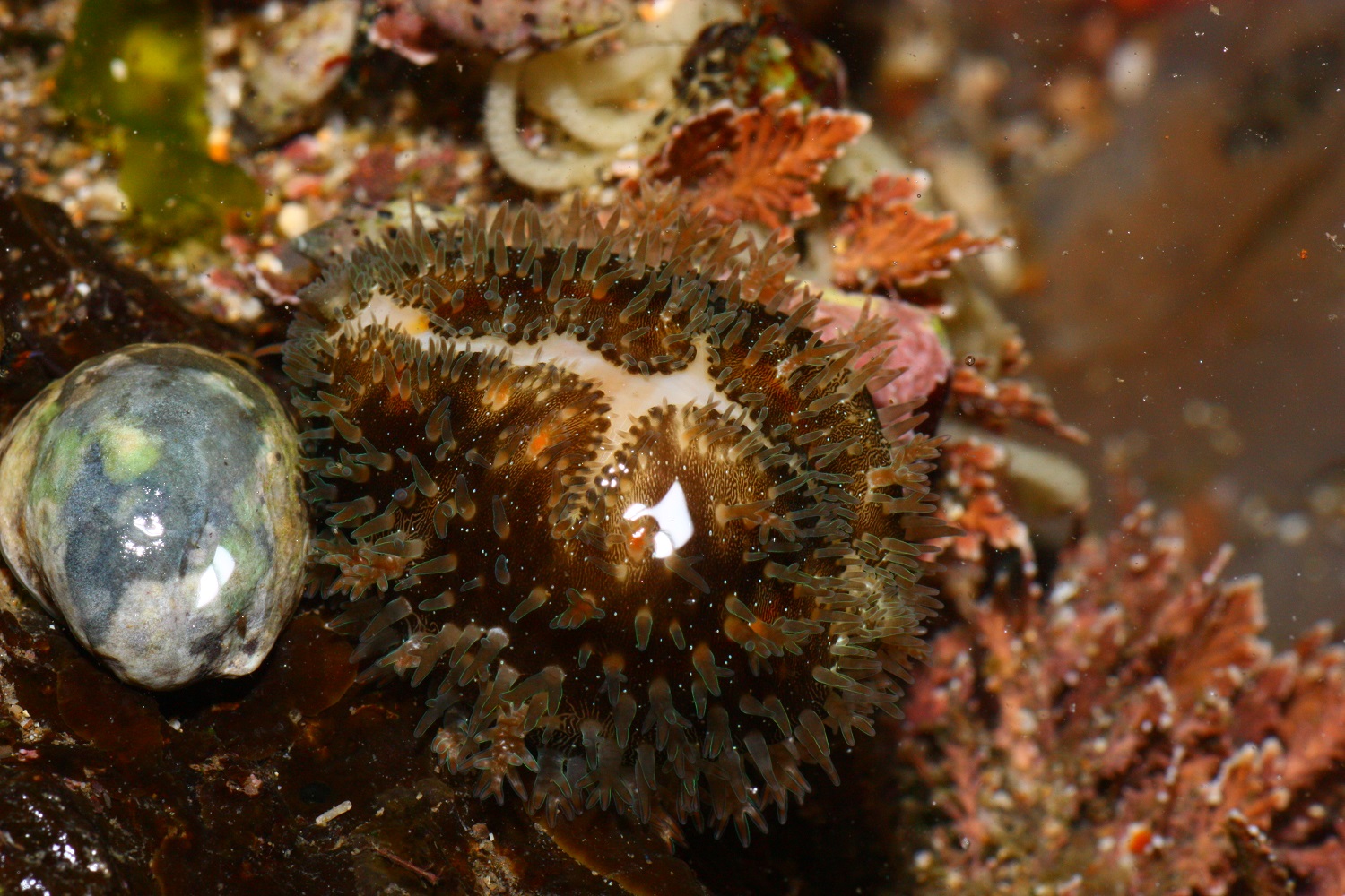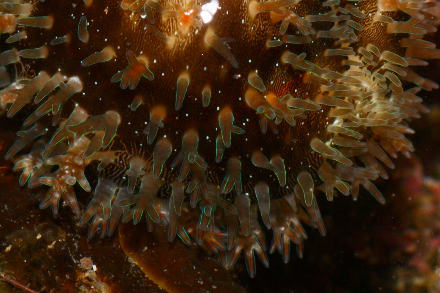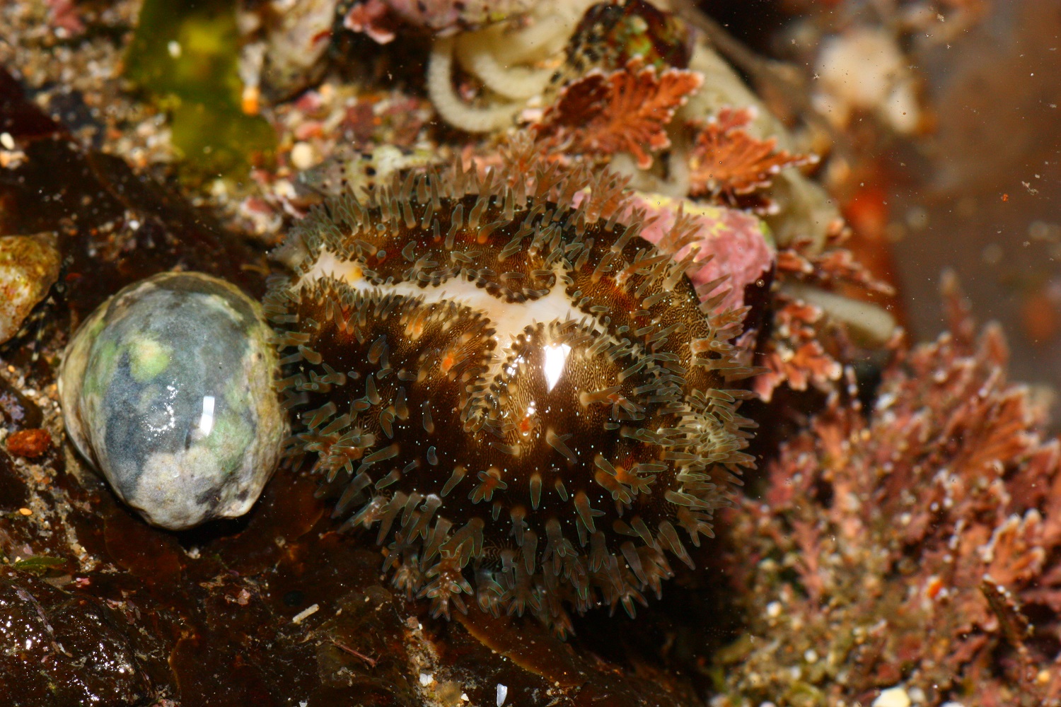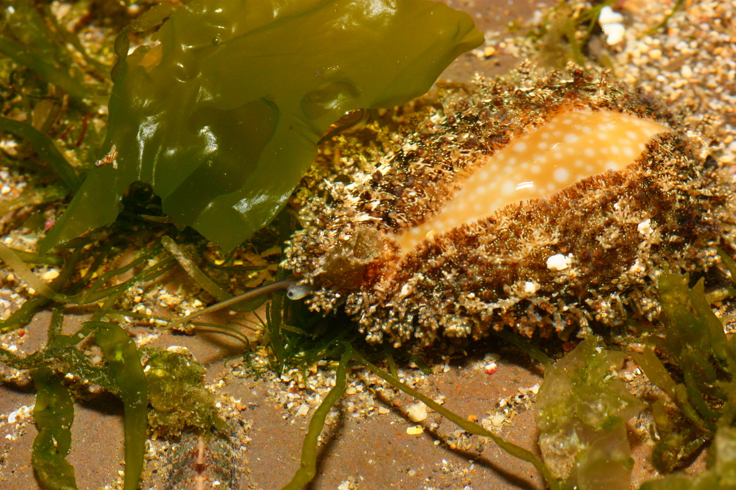 金環寶螺, 學名: Cypraea annulus, 外套膜的突觸表面有螢光的感覺