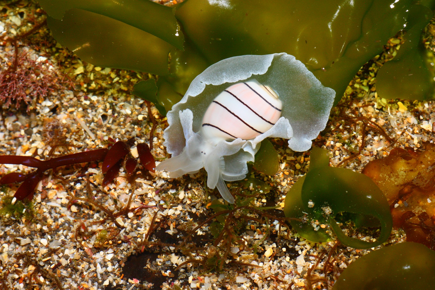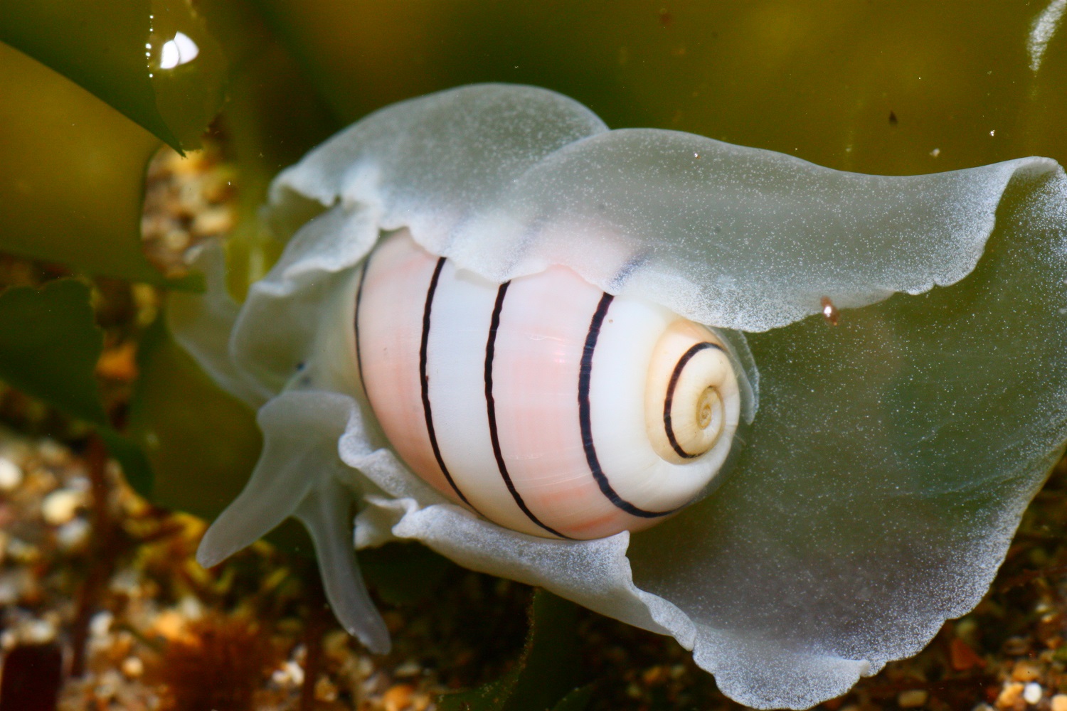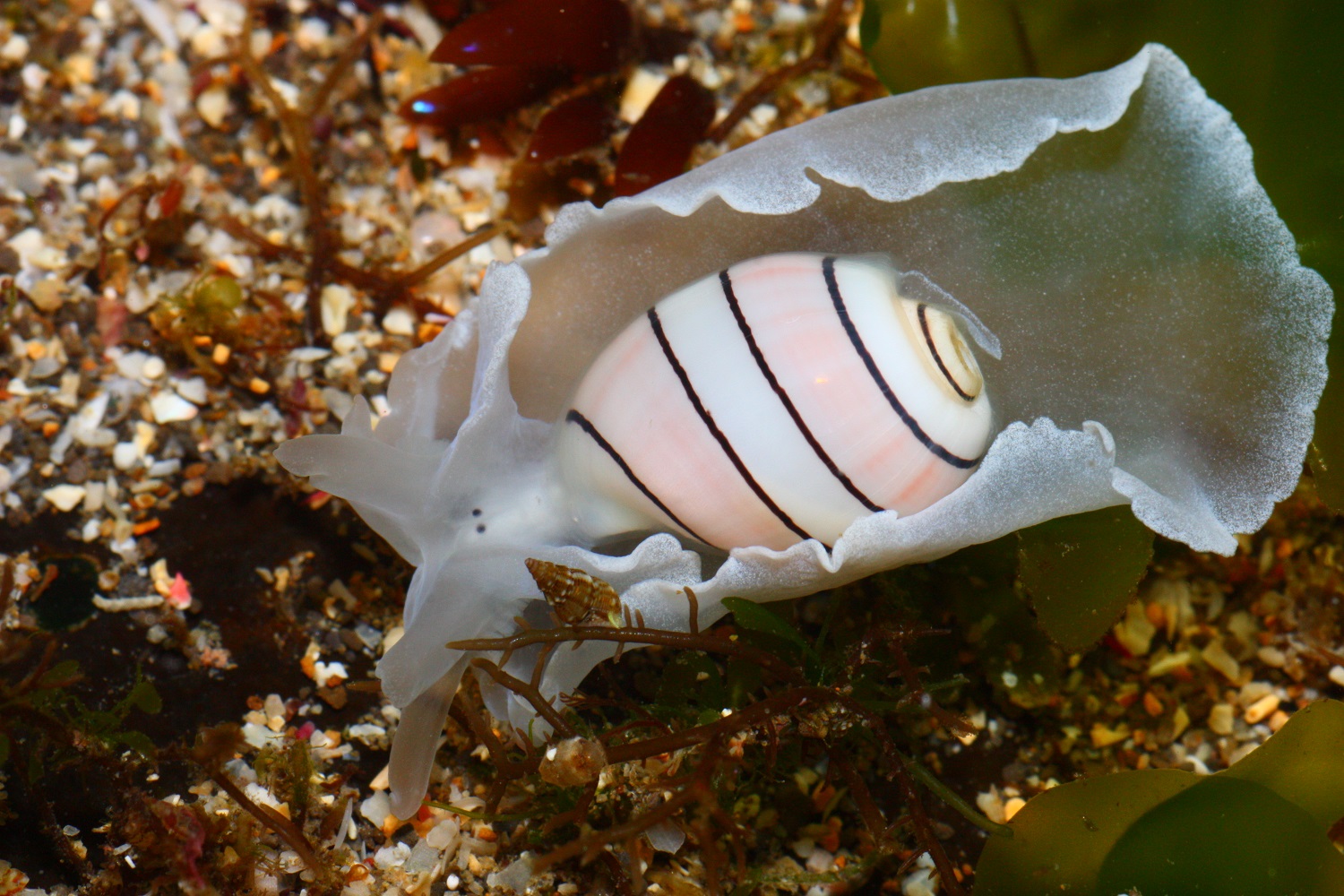 小眼寶螺的外套膜是暗紅色的