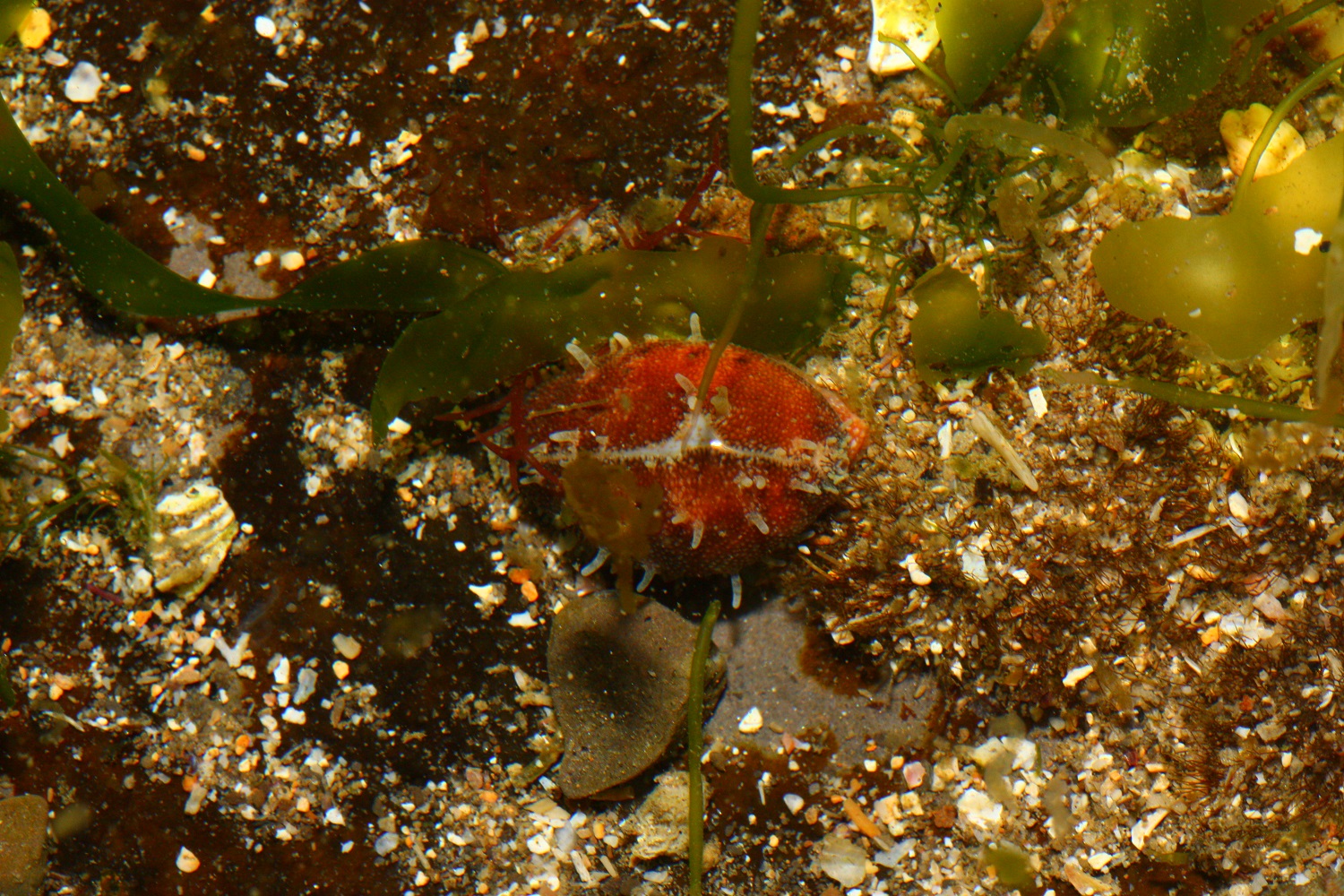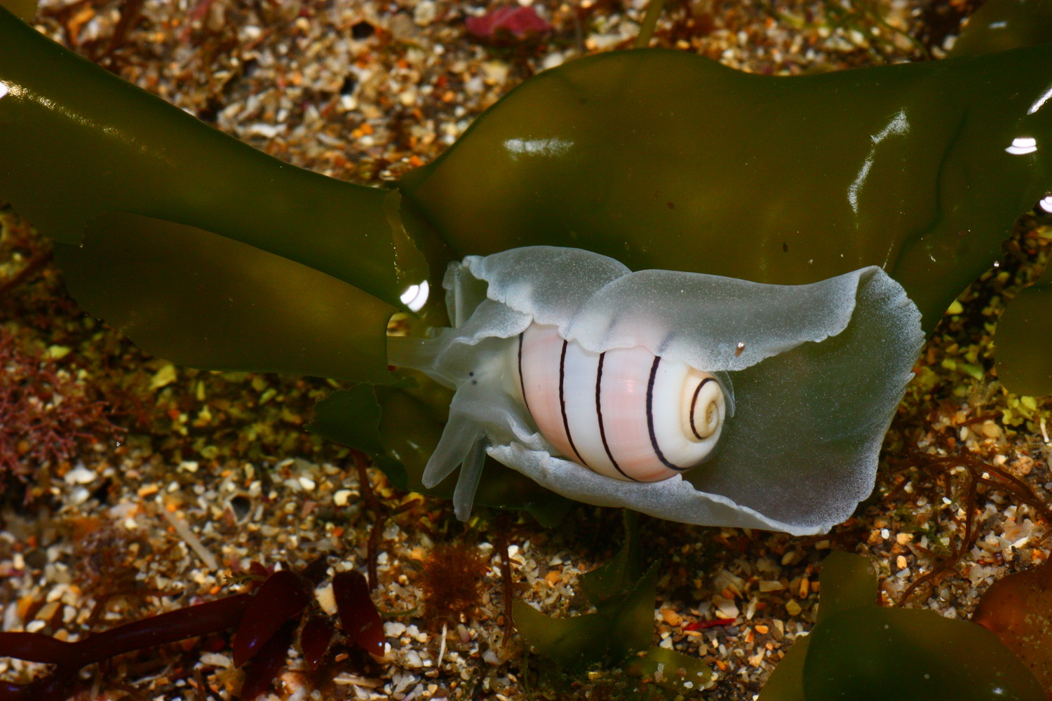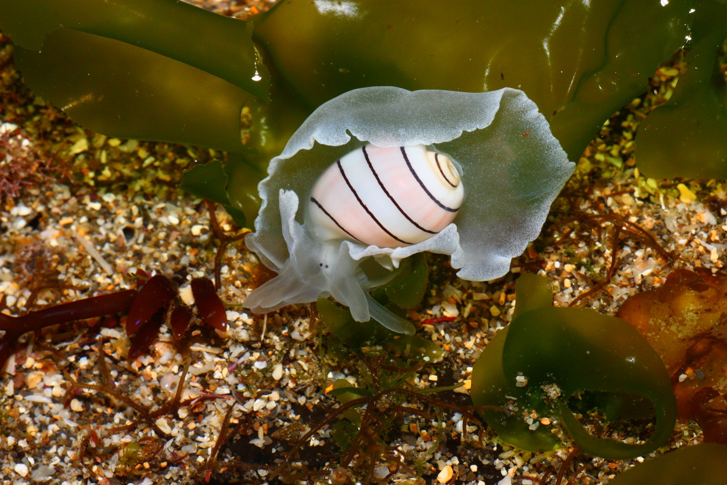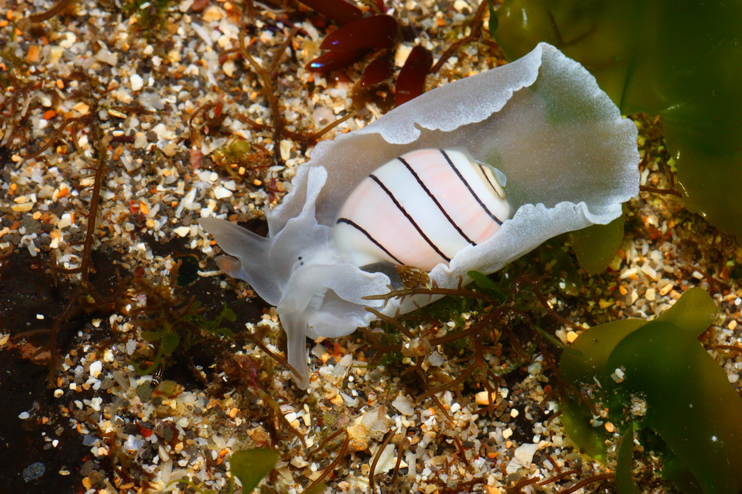 小眼寶螺的外套膜是暗紅色的