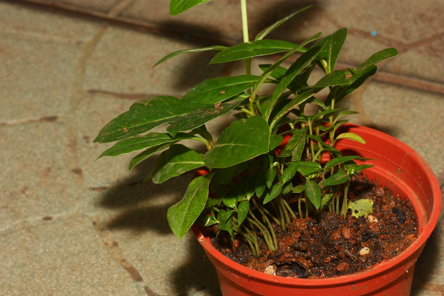 同一個盆栽內, 有些葉子已經很大片, 有些還只是小小的。