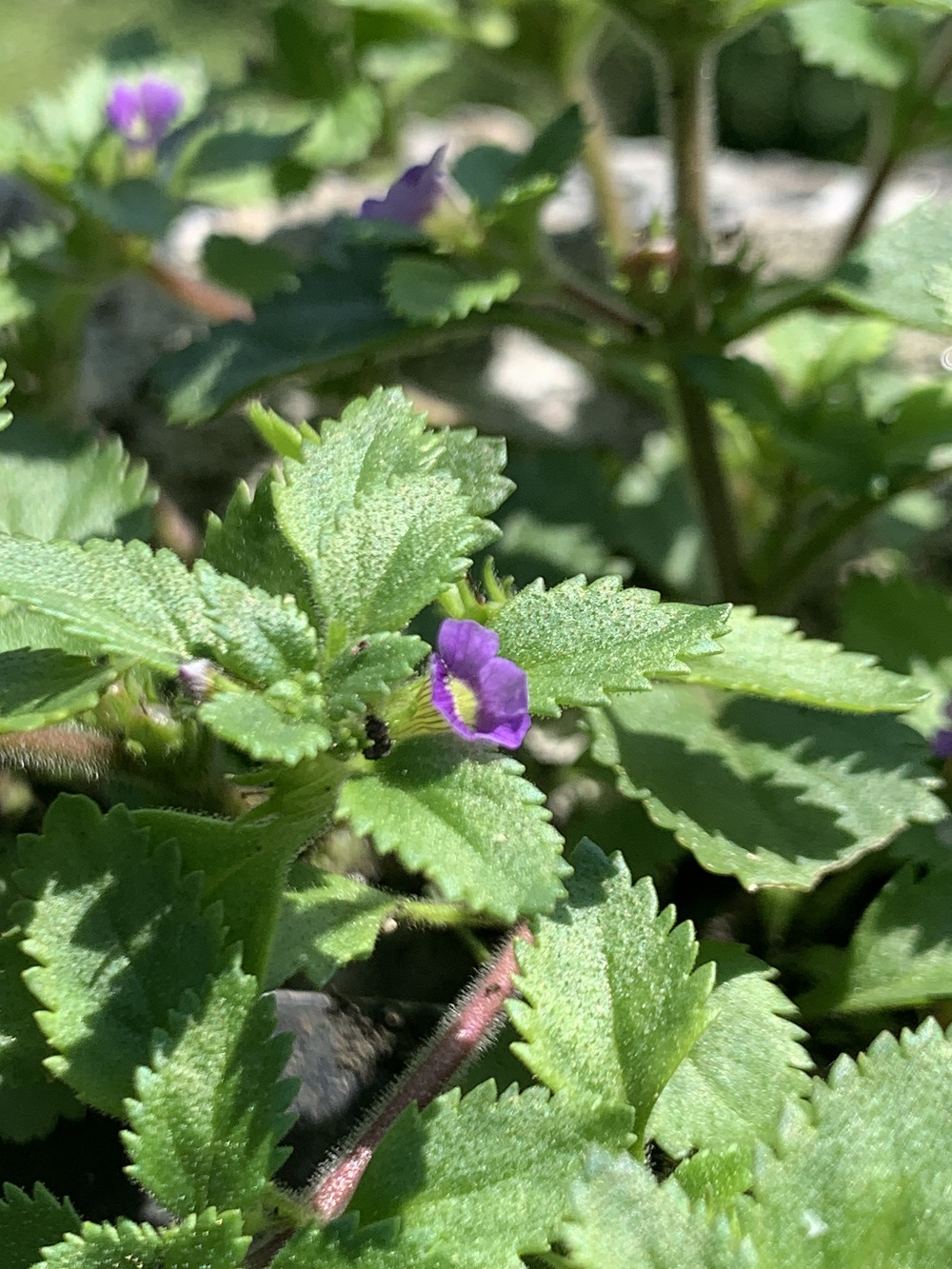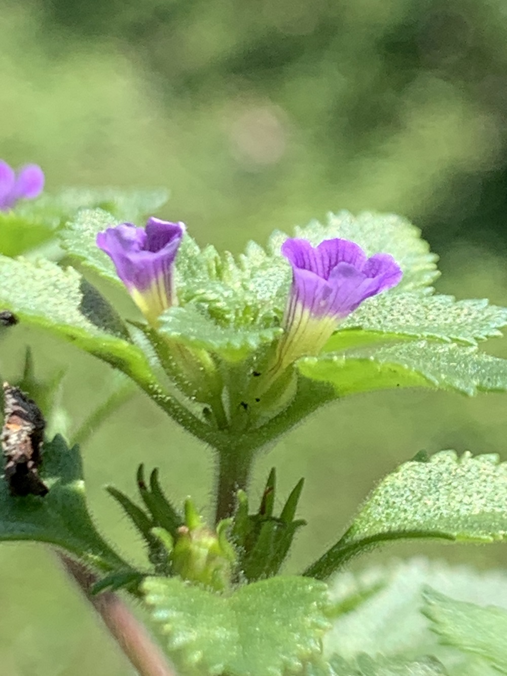 植株矮小, 全株被腺毛, 葉有鋸齒, 花藍色或藍紫色