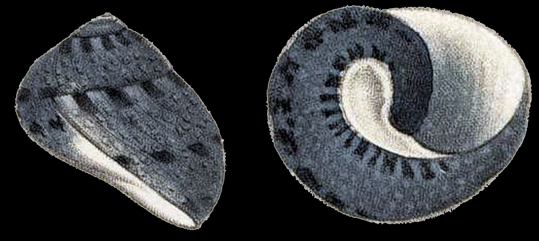 殼底的邊緣,上方有三條環狀色帶,殼底也有三條環狀色帶.