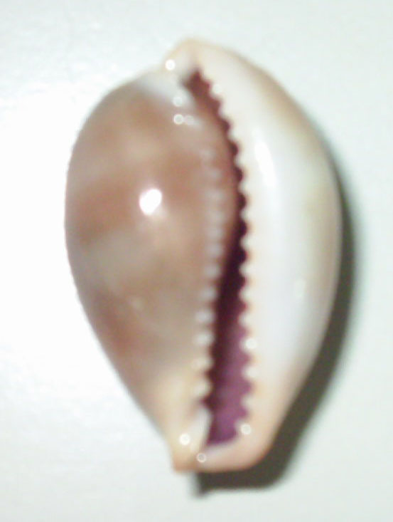 殼口左邊看起來有點像紫口寶螺的殼表顏色但殼齒顏色不對
