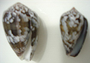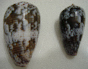 哪位告诉我花玛瑙和紫花的区别(Conus achatinus和Conus purpurascens )?
