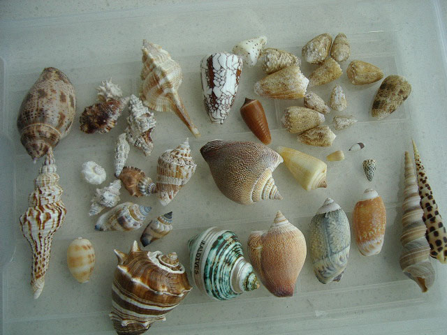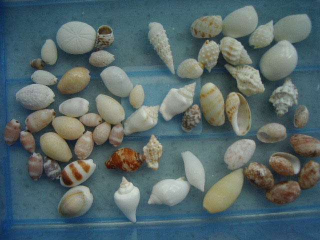 下图全是捡的(马尔代夫岛上沙滩),上图除香螺、水晶凤凰、蝾螺、涡螺等几个较大个的螺是便宜买的外,其它也是捡的,包括纹身芋螺(活体,浮潜摸的)、法螺活体、蛙螺活体。