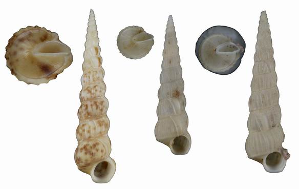 請問各未有沒有這種海螄螺,左邊的是菲律賓的Claviscala garciai (Kilburn, 1994),右邊二枚是台灣的(日本也有)Claviscala solar Nakayama, 1995