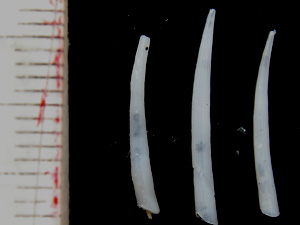 這種之前agate兄有提到過,今天就把圖片貼上來給大家瞧瞧.名稱方面......好吧,我認輸,象牙貝真是太難了.不過依照大小,殼形,和表面雕刻(表面有極細的縱肋), 初步判定是Sagamicadulus elegantissimus Sakurai & Shimazu, 1963.