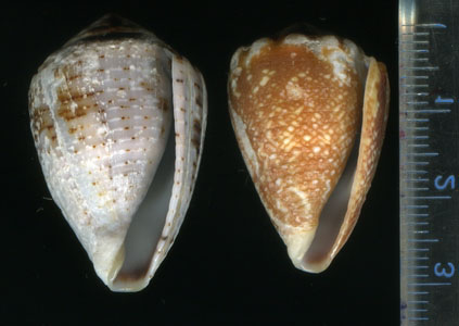 應該不是conus glans 外形和體層紋路顏色及殼口色澤都有差異,早期採集未曾留下口蓋,當時殼表佈滿厚厚的石灰質,泡了很久的漂白水,終於將石灰質除下,但殼皮也沒了....