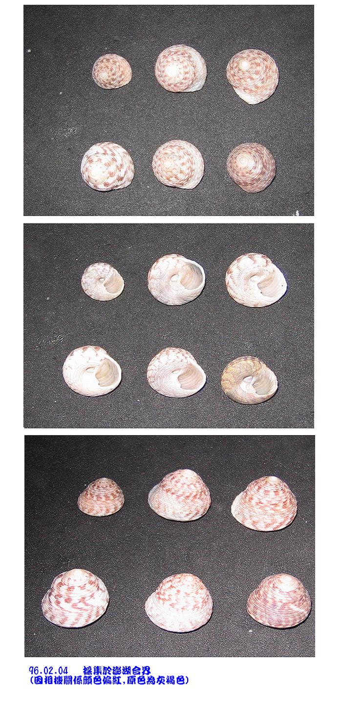 這是美臍鐘螺Monilia callifera(Lamarck,1822)。有點像morti(即lentiginosa)。澎湖部分海邊沙灘很多,就是從沒撿到新鮮的殼。以下三圖就是(圖一21.3mm、圖二19.6mm、圖三14.4mm─16.9mm)。