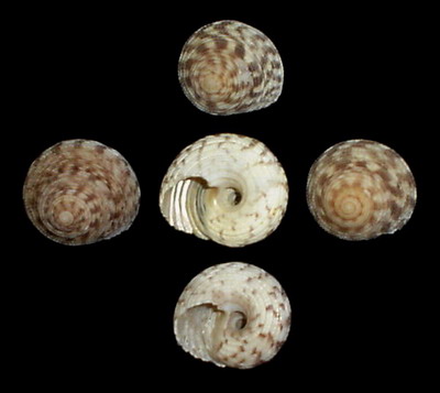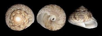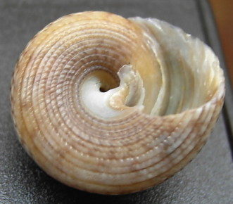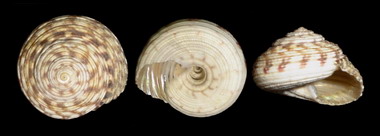 至於morti(即lentiginosa)鐘螺,很像美臍鐘螺,澎湖沒產,圖一(18.1mm)、圖二(14.9mm)是菲律賓產的。感覺上除紋路、色澤略有差異外,臍孔較小,且有部分被蓋住。