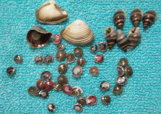 網聚時,與ccb8357兄談及東石港貝況:類似於安平港但種類較單純無變化.我過去已多次到東石魚雜翻過,這次過年回老家趁初三出遊,花20分鐘又翻出一些東石港常見的貝殼:
