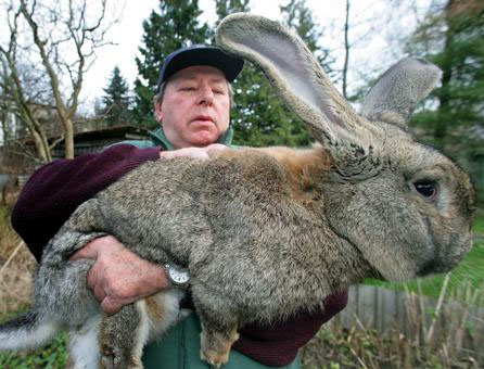 不是合成喔,我這幾天還在東森新聞台還是民視新聞台看到在報導這隻兔子,說這隻兔子重10.4kg,是德國一位農夫培育的超級大兔子品種,真的就像前面的大大所說的,要送給北韓政府解決缺糧的問題,送了幾隻過去之後就沒有下文了,他懷疑是被北韓政府的高官吃了,影片中有用其他角度攝影,兔子真的超大,就像一隻中型犬,連腳掌都很大厚實!!養一隻巨兔冬天拿來做腳墊,應該很保暖